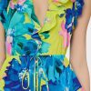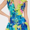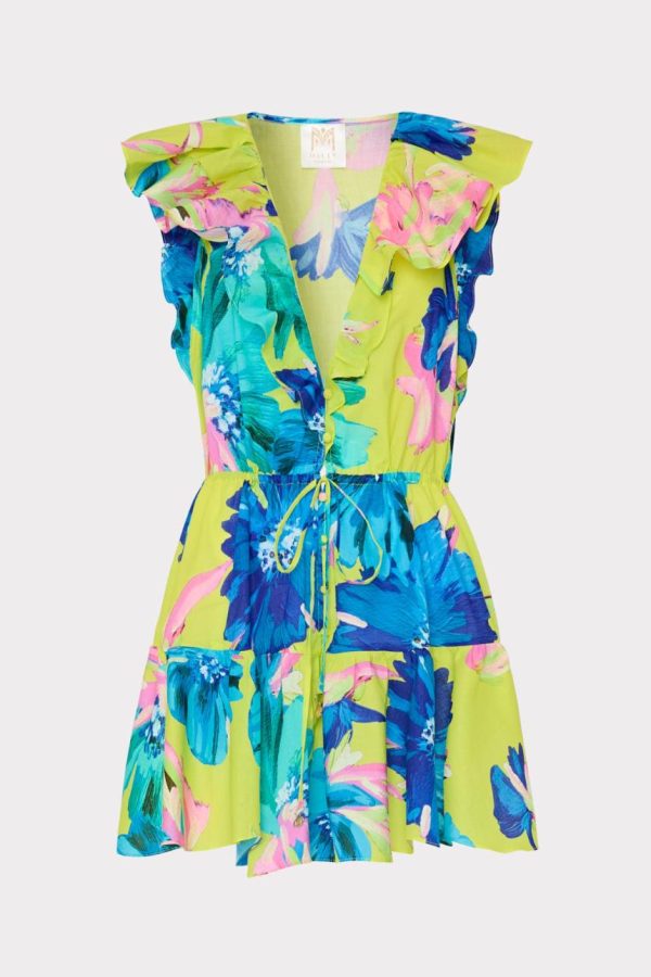 Cut from our lightweight, semi-sheer fabric, the Dana dress is our absolute best yet swim cover-up mini dress. It has a ruffle-lined deep v-neckline that falls to a tiered skirt and is finished with a self-tie at the waist. Wear it over your favorite MILLY swimwear.