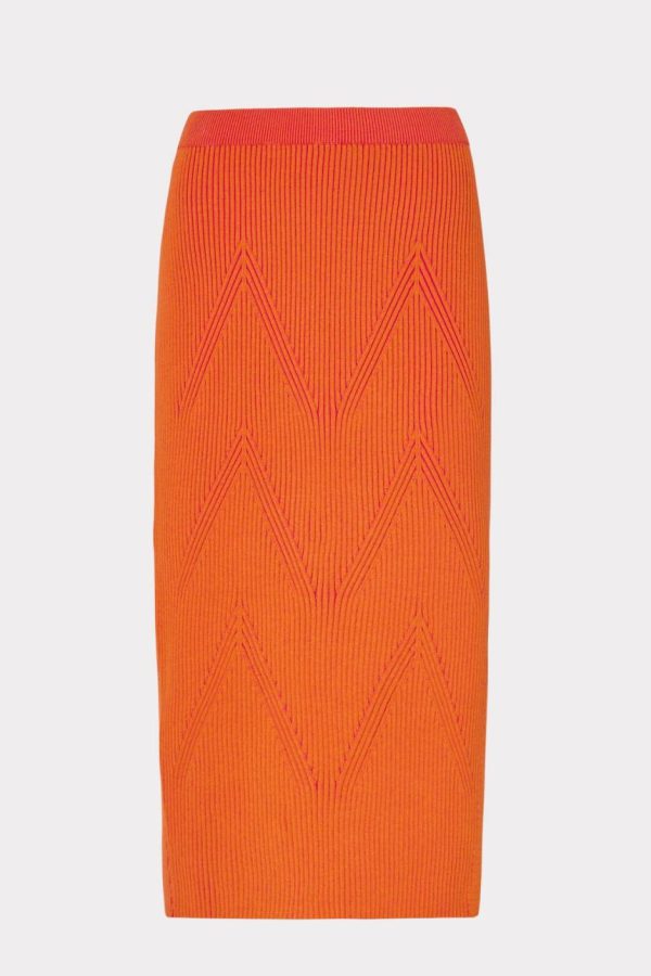 Rendered from our luxurious ribbed knit fabric, this midi skirt hugs the body and features a pink and coral zig zag detail throughout. Style yours with the coordinating Plaited Knit Shell Top.